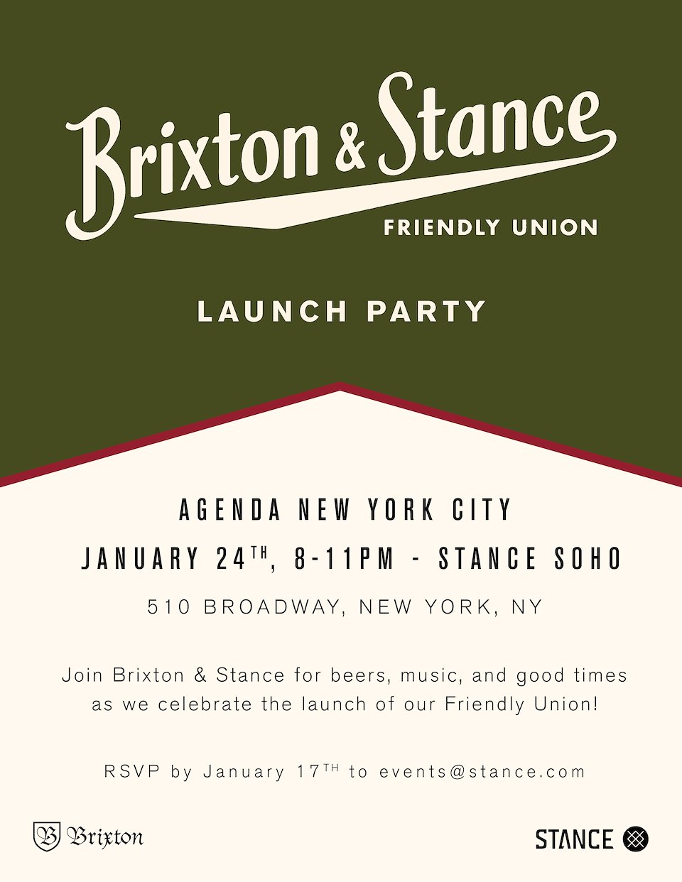 Stance & Brixton Friendly Union Launch Party Invite