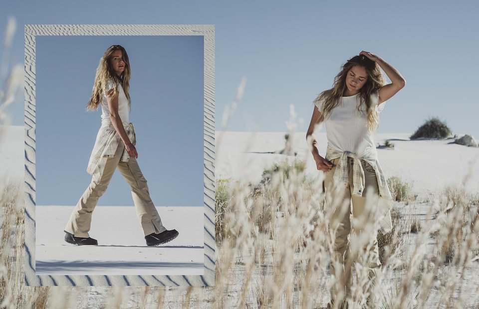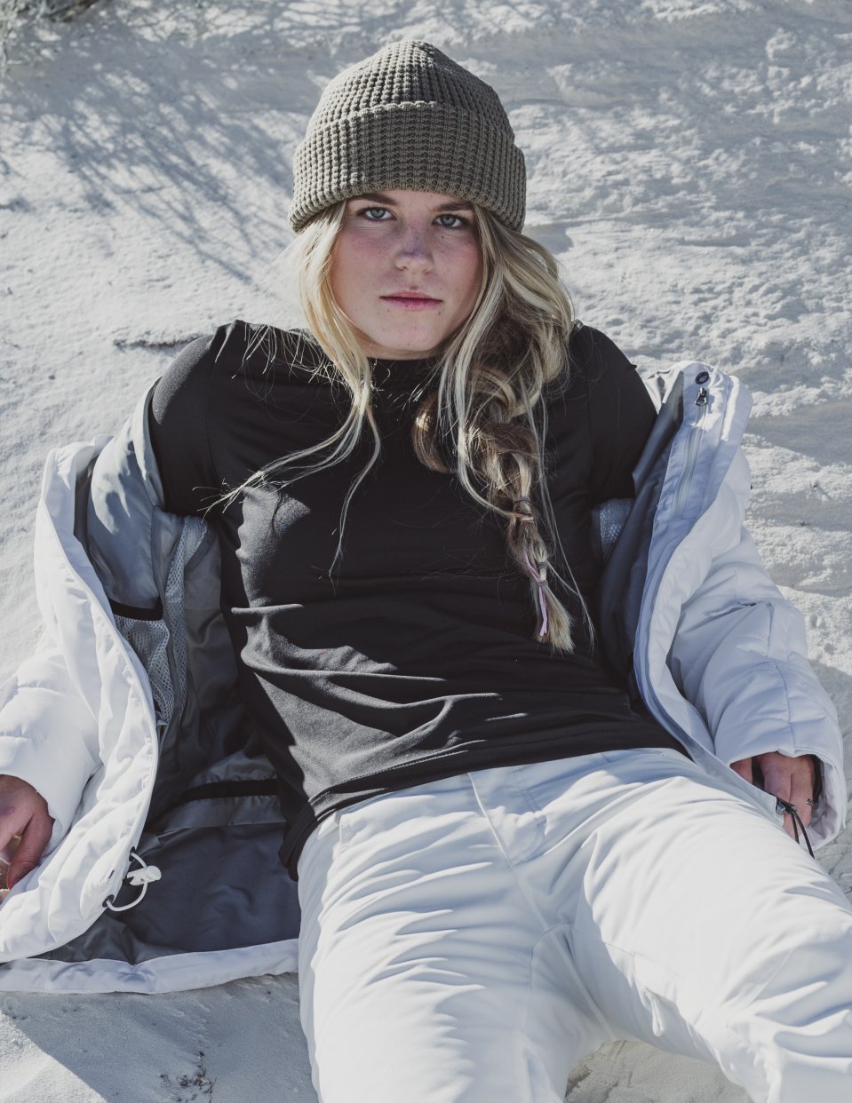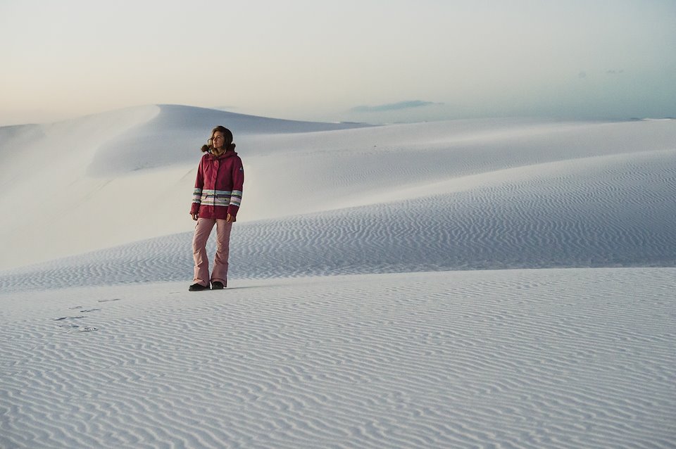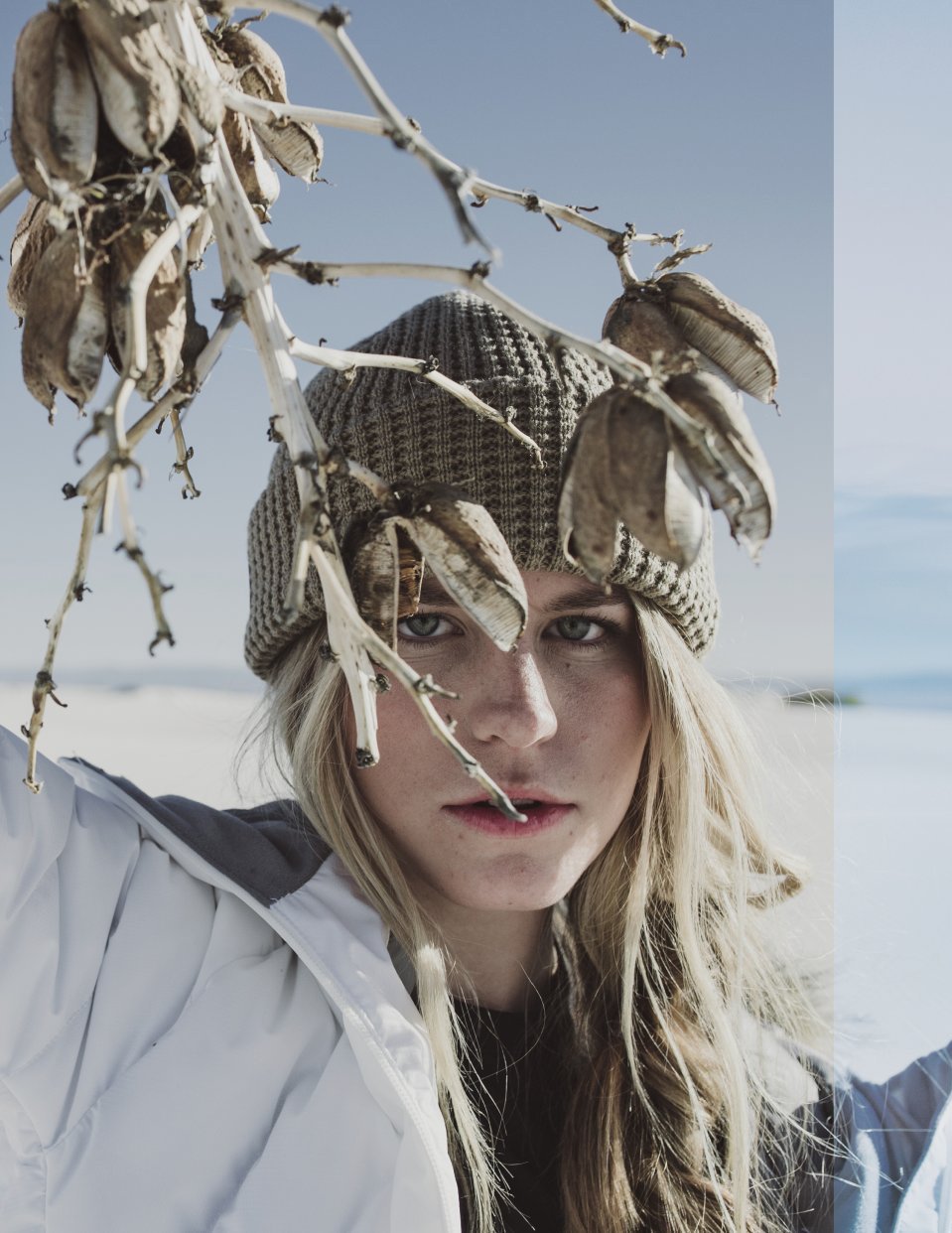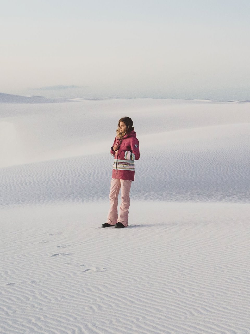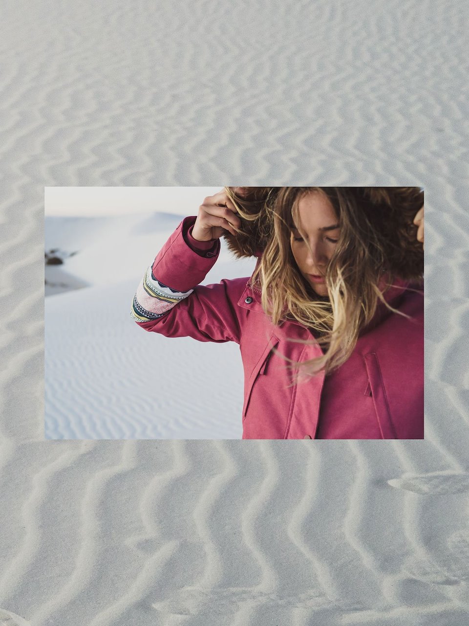 It’s pretty uncommon to see Maddie Mastro and Bekah Ashley off their snowboards. Even more uncommon is seeing them in fashion photography encircled by terrain that’s subtly snowless. That’s the direction we chose to take for the Billabong Women’s 2018 Snow Campaign. Shot in White Sands, New Mexico, the varying elements of the desert’s environment played well into each of the season’s apparel color-stories and inspired the names of each collection.