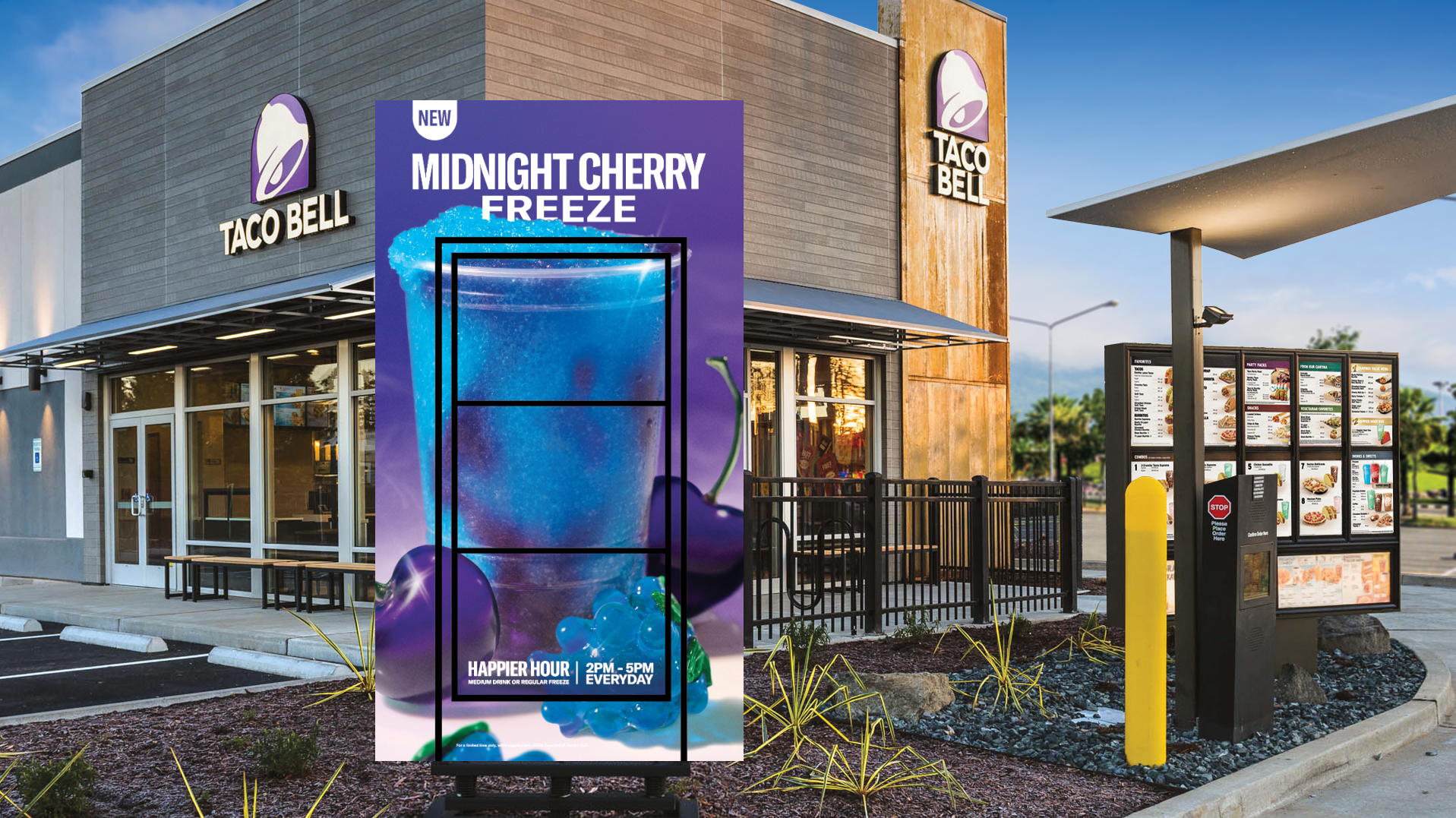 The Taco Bell Midnight Cherry Freeze takes a Blue Raspberry Freeze and swirls in black cherry-flavored syrup for a "midnight-inspired, dual-flavor experience.